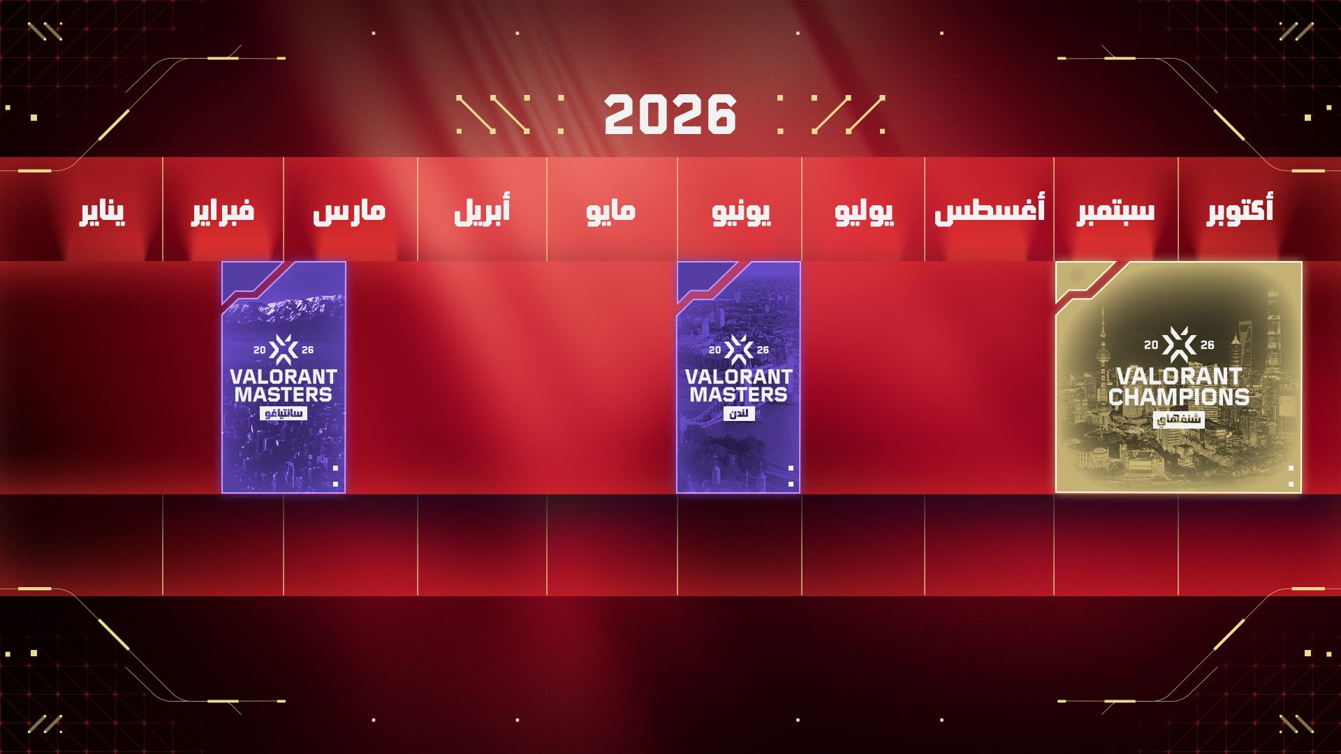 سيكون موسم 2026 لا يُنسى، نظرًا لوجود المزيد من الفعاليات العالمية، وأنظمة لعب تنافسية عالية المخاطر، وتوسّع في بطولة Masters، ومسار مفتوح جديد نحو بطولة Champions. تمثّل هذه التغييرات بداية عصر جديد في منافسات VALORANT الإلكترونية وانطلاقة لموسم VCT أكثر انفتاحًا!