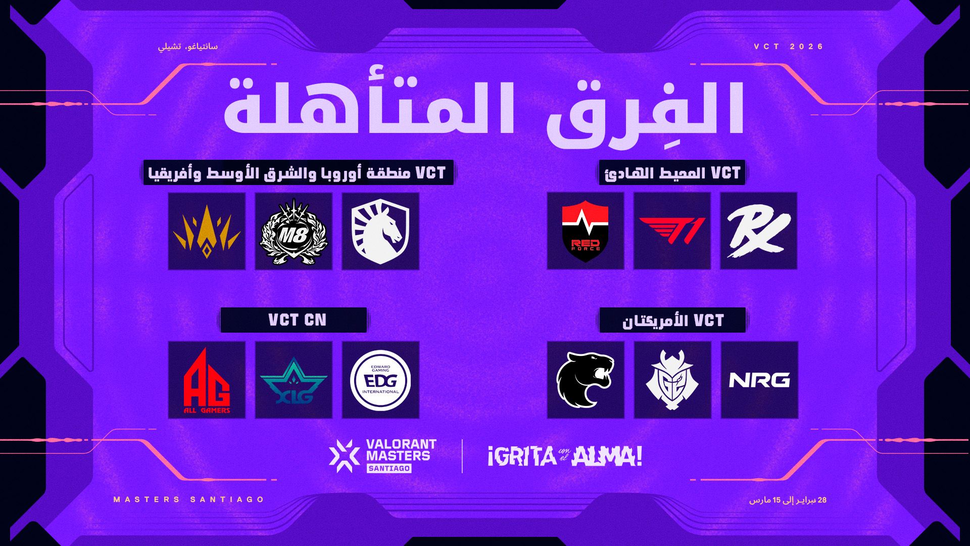 احرص على متابعة القنوات الرسمية لرياضات VALORANT الإلكترونية على وسائل التواصل الاجتماعي للاطّلاع على مزيد من المعلومات عن موسم valorant champions tour 2026: