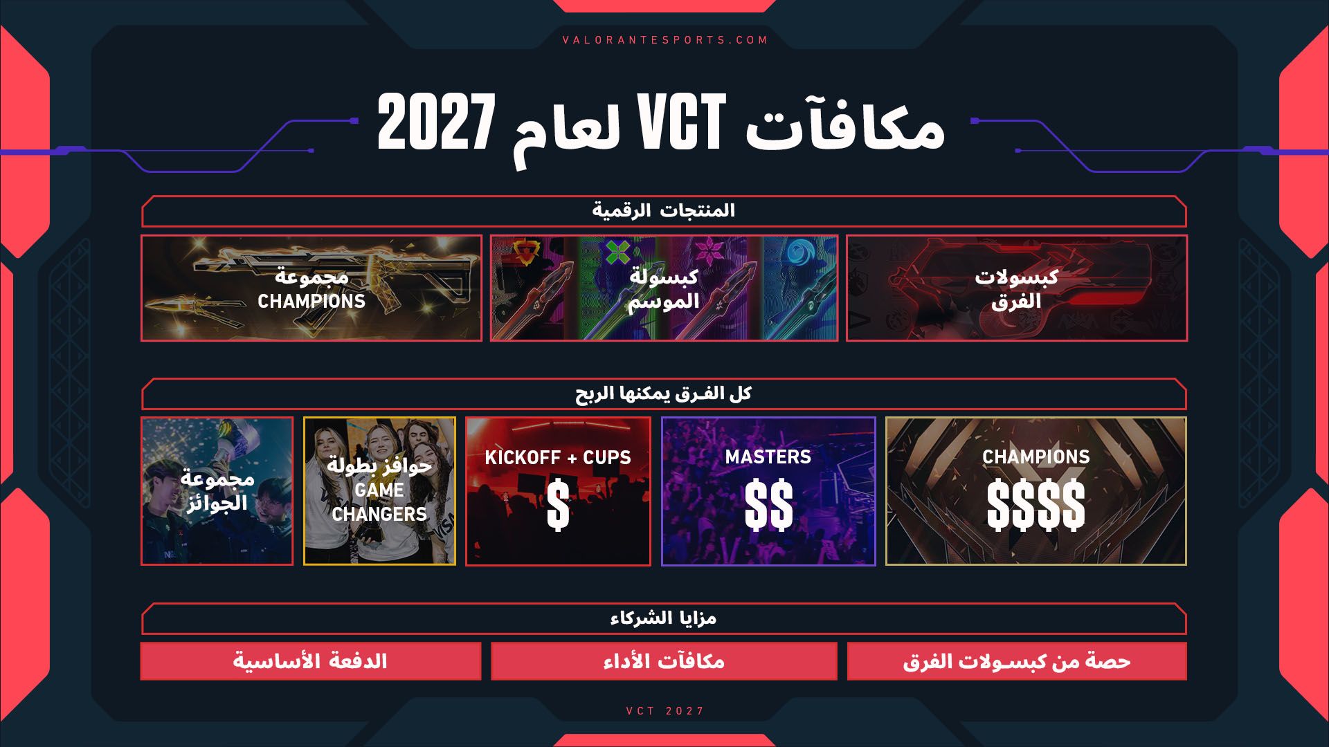 يظل الشركاء ركيزة أساسية في ضمان نجاح valorant champions tour، وستتم مكافأتهم بما يلي: