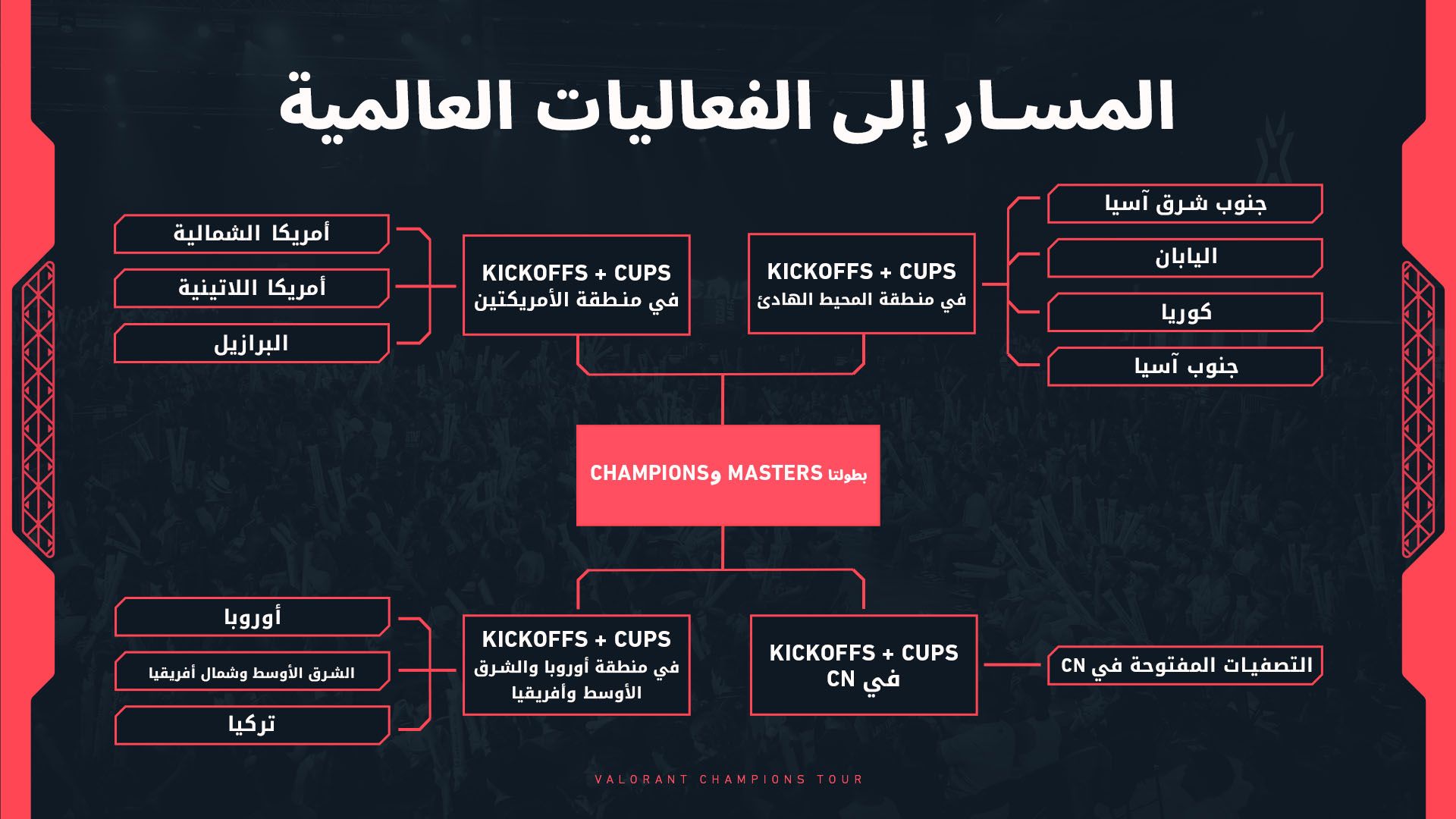 إنَّ الجمع بين المنافسات الإقليمية والدولية والعالمية سيساعدنا على تحقيق التوازن الدقيق بين التنافسية والتمثيل العادل في كل مرحلة من valorant champions tour.