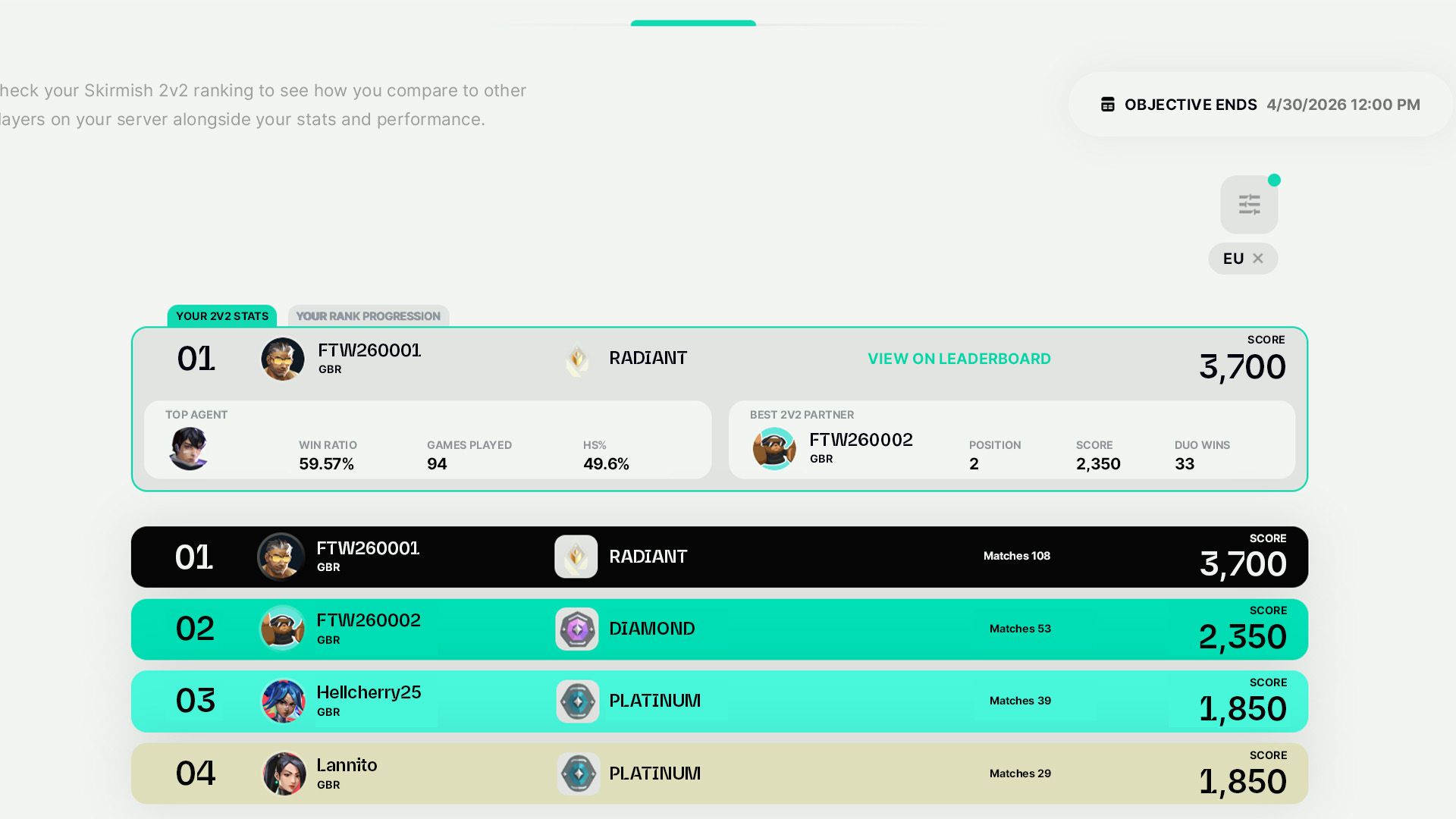 The ranked ladder lives on the FTW site where you can track your progress and see your rank. The ranking system mirrors the one we have in-game, ranging from Iron to Radiant. All you have to do is connect your account to FTW and play the game. Once the event is over, you can redeem your rewards by going to the FTW website.