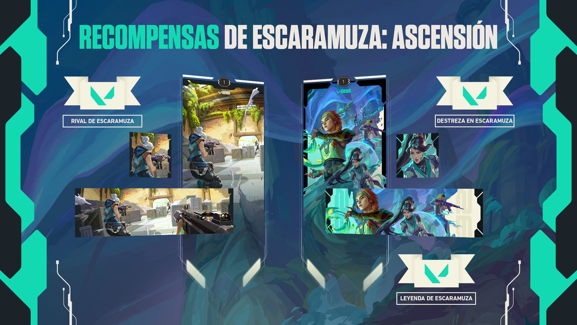 Os presentamos Escaramuza: Ascensión, la evolución de Escaramuza. Una selección de agentes con habilidades limitadas, armas por fases y un sistema de clasificación competitivo a través de la página FTW que os permitirá conseguir recompensas del juego. Además del emparejamiento 2v2 preexistente, añadiremos un modo 1v1 para que descubráis qué tal os va en una auténtica experiencia competitiva.