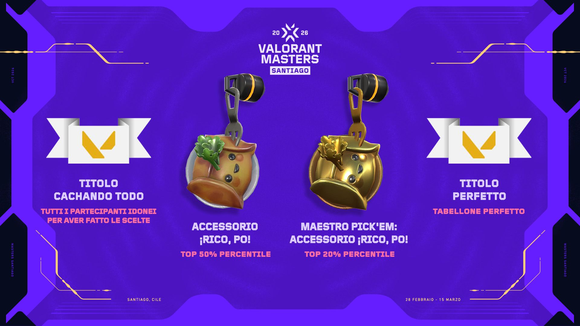 - I Pick’Em tornano in pompa magna per i Masters Santiago! A partire dal 19 febbraio, potrete fare i vostri pronostici per la fase a sistema svizzero sia nel client sia sul web