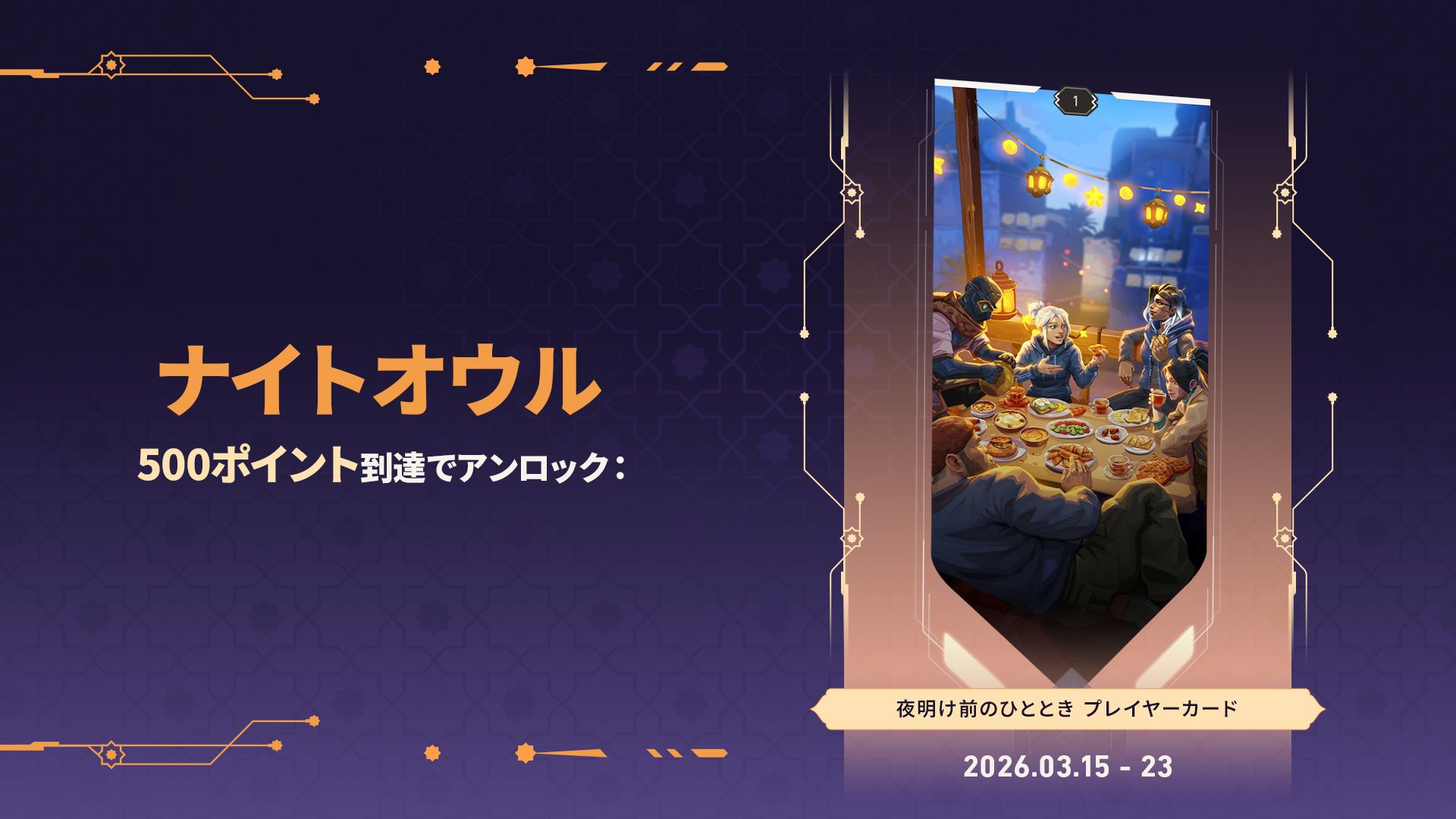 合計で500ポイント獲得すると、「夜明け前のひととき」プレイヤーカードを入手できます。