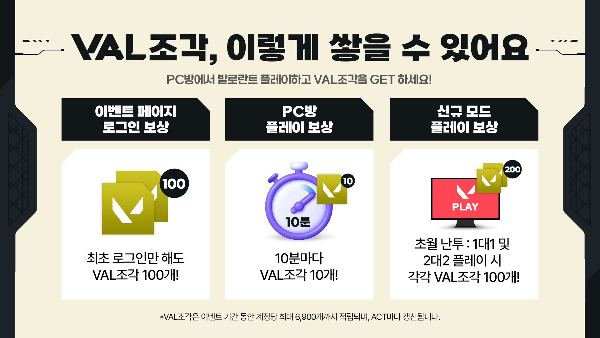 (4/30~6/23) ACT 3 PC방 VAL조각 이벤트 안내