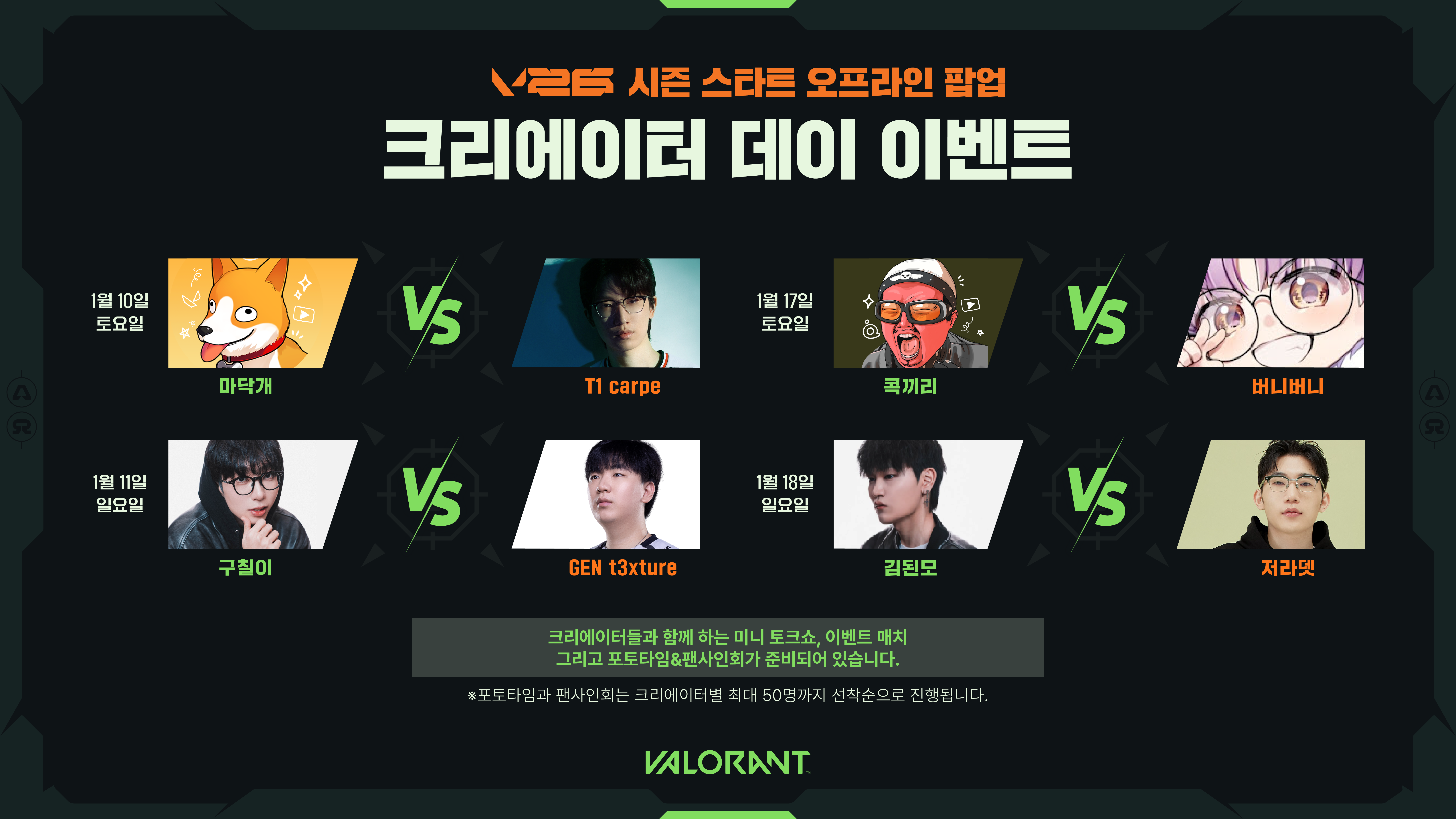 크리에이터 데이에는 발로란트 크리에이터들이 팝업 현장에 직접 방문해 요원 여러분과 함께하는 다양한 프로그램이 진행됩니다.