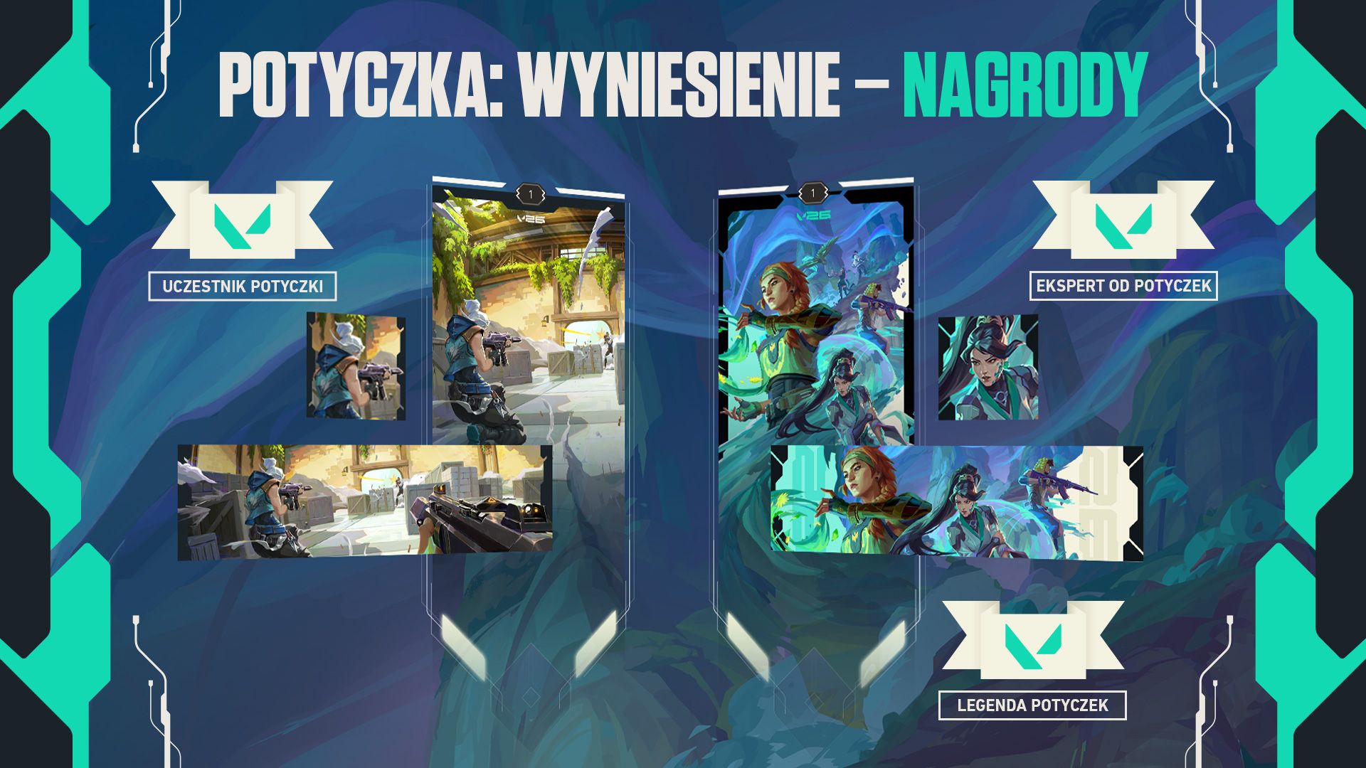 Karty gracza oraz tytuły zostaną przekazane w formie kodów tekstowych za pośrednictwem zakładki „Nagrody” na platformie FTW. Uczestnicy ponoszą odpowiedzialność za wykorzystanie kodów przed upływem podanej daty ważności na stronie Riot przeznaczonej do ich realizacji lub w kliencie gry VALORANT.