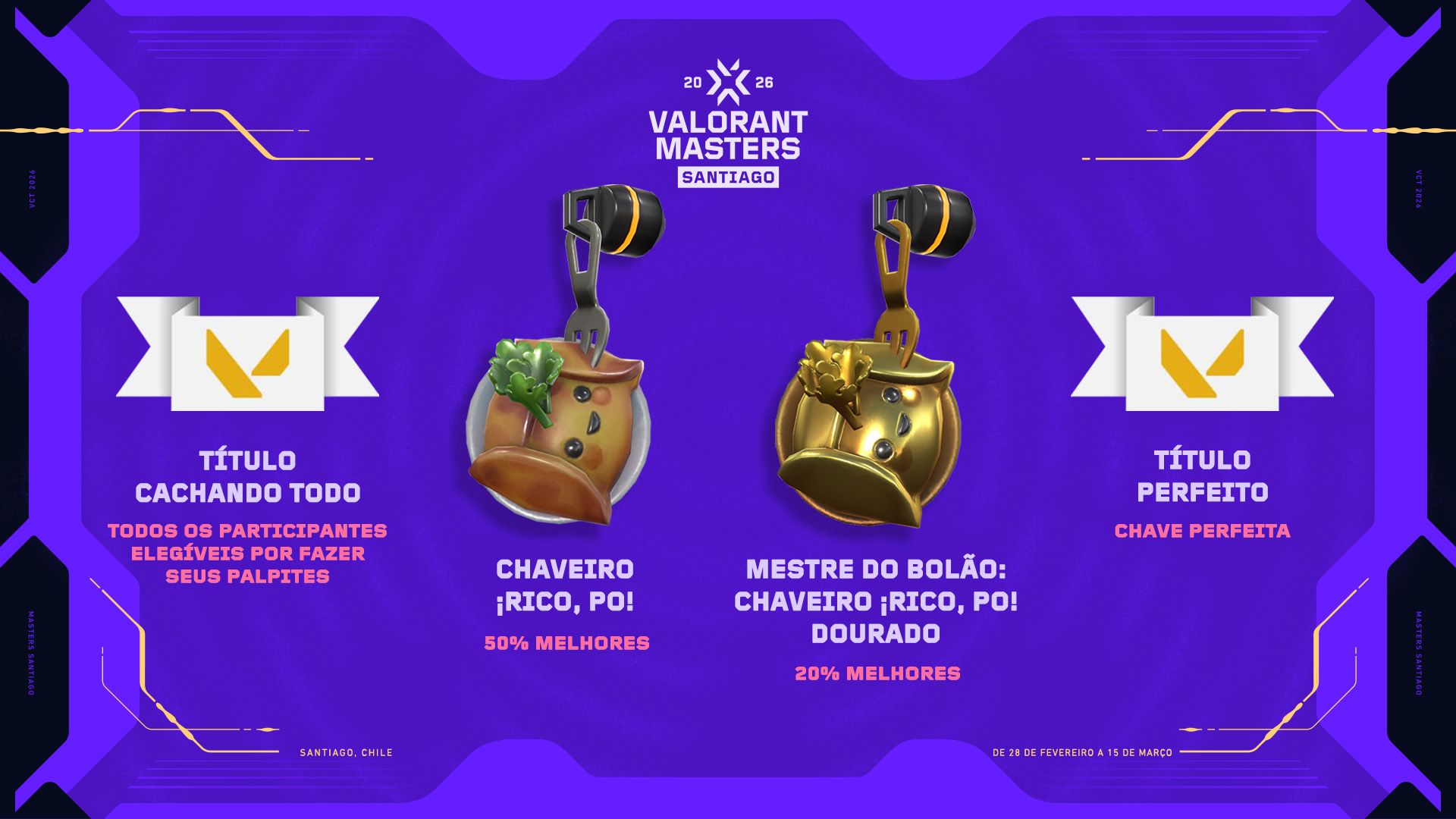 - O Bolão voltou com tudo para o Masters Santiago! A partir de 19 de fevereiro (BRT), você poderá dar seus palpites para a Fase Suíça no cliente e no site.