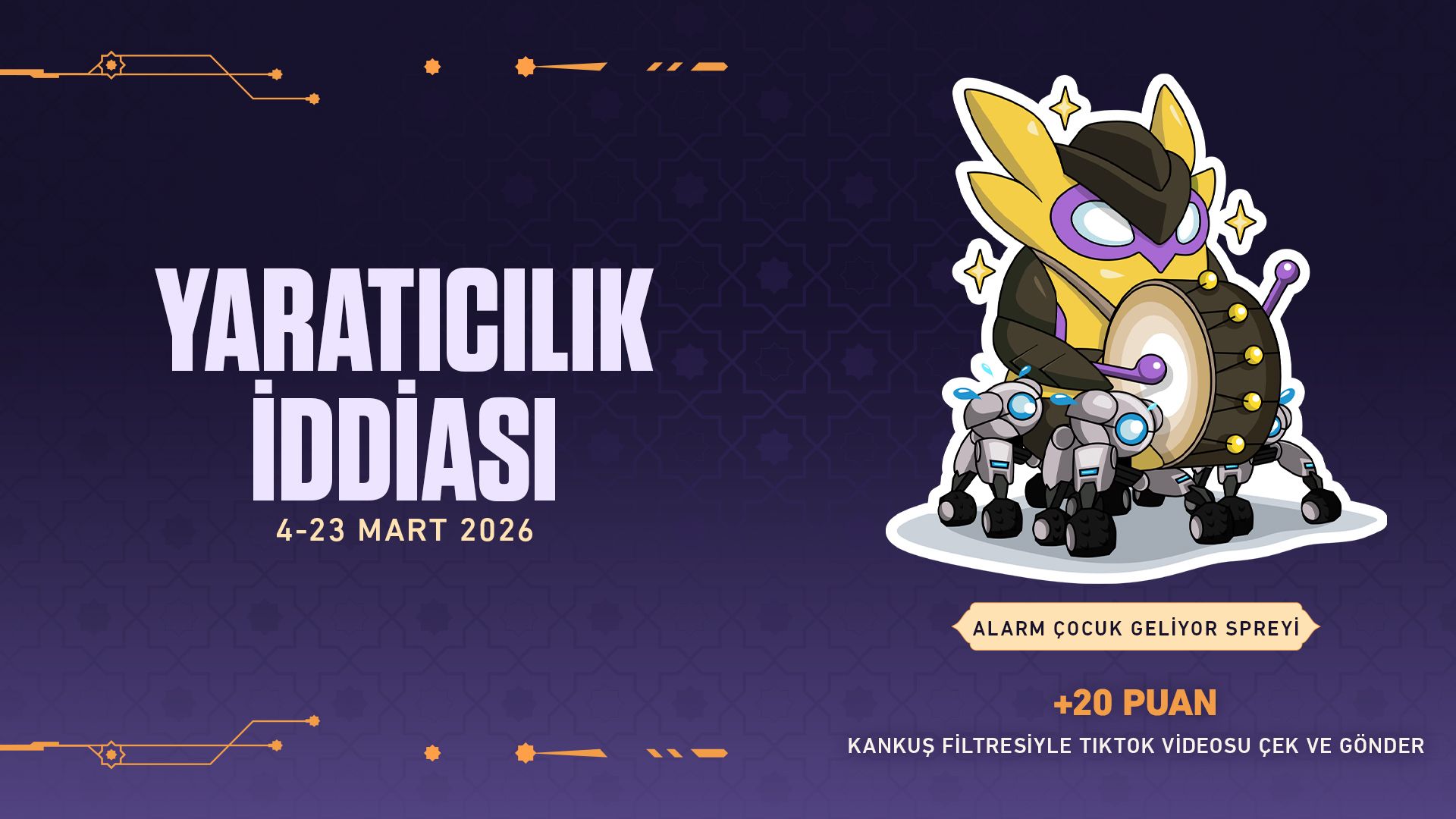 4-23 Mart tarihleri arasında yapılan gönderiler 20 puan kazandırır. (Etkinlik süresi boyunca yalnızca bir defa kazanılabilir.) Ayrıca etkinlik tamamlandıktan sonra Alarm Çocuk Geliyor Spreyi de açılacak.