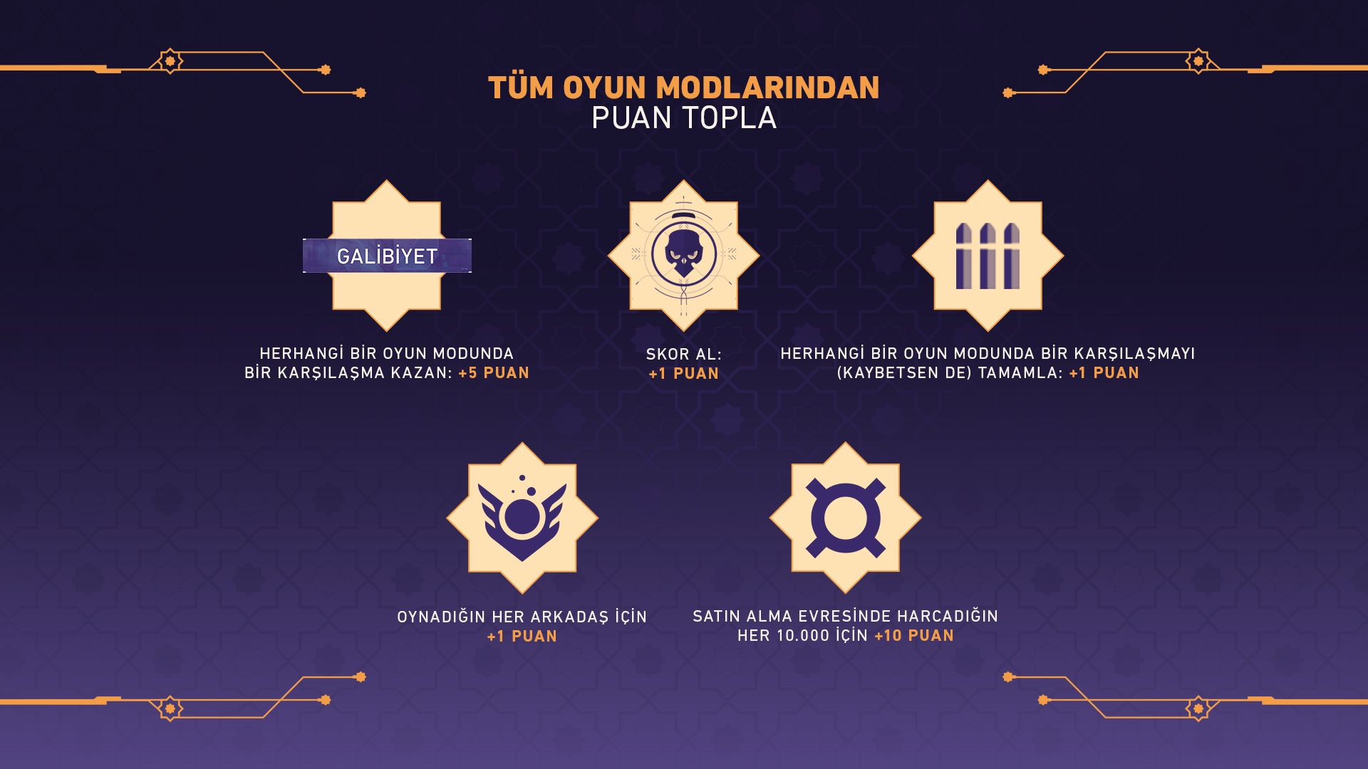 Şu eylemlerle TÜM oyun modlarında puan toplayabilirsiniz: