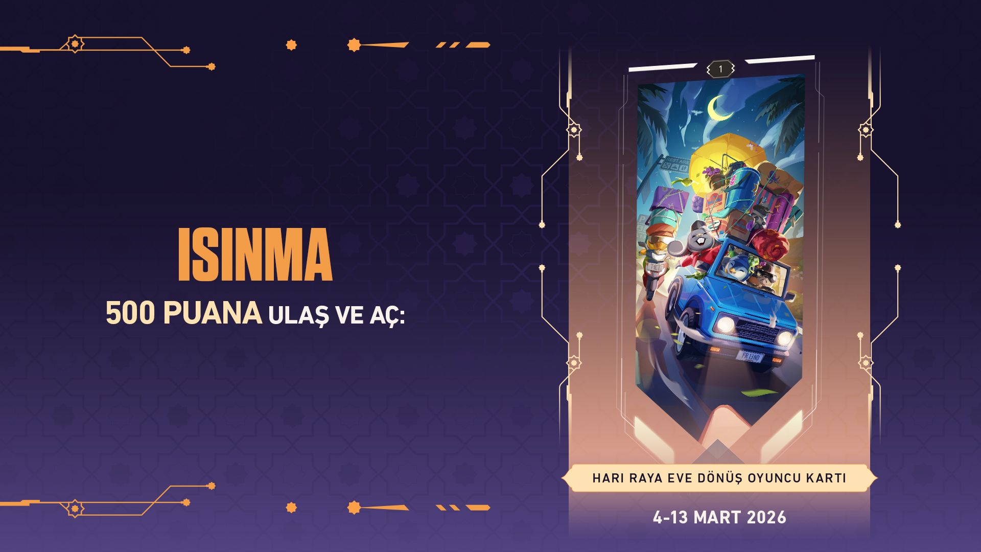Toplamda 500 puan kazanarak Hari Raya Eve Dönüş Oyuncu Kartı'nı kapın.